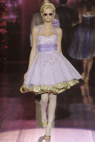 美国“老甜甜”Betsey Johnson从来不曾因为自己的年龄终止过对于少女的向往。这次以Betsey 1958年时高中“Promo”(毕业舞会)为主题的系列,一如既往的性感可爱,金发碧眼的性感尤物依旧是设计师的缪斯女神。整个秀场被布置成了一个巨大的舞池,女生们身穿层层叠叠的薄纱蓬裙或是帝国式的高腰裙,搭配白色的丝袜,像是一个个粉嫩可爱的芭比娃娃。花朵,蕾丝,蝴蝶结的装饰几乎泛滥,却也原始地表达出了少女的审美情趣。泳衣的设计则像极了梦露时代的招贴画女郎……不过,最有Betsey特色的还是那件黑底白点小礼裙,硕大的黑色蝴蝶结,让人联想起米奇那对圆形耳朵。 发布会的最后,四个模特背后的字母组成了“vote”的字样,倒是把舞会的精神贯穿始终,谁能当选今晚的Party Queen还需要观众的支持。Betsey Johnson也没有忘记以一个高难度的侧空翻来答谢观众,不知这位美国甜心风格的设计师还能这样青春多久。 [1] [2] 下一页 |