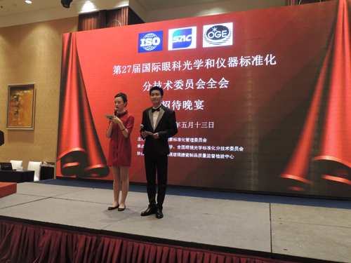 东华大学今晚举办国际眼科光学和仪器标准化全会的招待晚会 5月13日晚,东华大学在上海亚太新发展万豪酒店举办第27届国际眼科光学和仪器标准化分技术委员会(ISO/TC172/SC7)全会招待晚会。出席招待晚会的领导和嘉宾有东华大学刘春红副校长、ISO/TC172/SC7 Herbert Krug主席、Elisabeth Leitner秘书长、中国轻工业联合会钱桂敬副会长、中国眼镜协会崔毅理事长、上海市质量技术监督局陈晓军副局长和全国光学和光子学技术委员会章慧贤秘书长,来自中国、德国、法国、美国、日本和澳大利亚等100多位专家代表出席招待晚会。参加本次全会招待晚会的代表还有来自北京、上海、江苏和浙江等10多个地方眼镜行业协会的会长和秘书长,全国眼镜光学分技术委员会委员们,国内眼镜专业媒体的总编,以及卡尔蔡司、依视路、康耐特和万新等国内部分眼镜制造骨干企业代表。